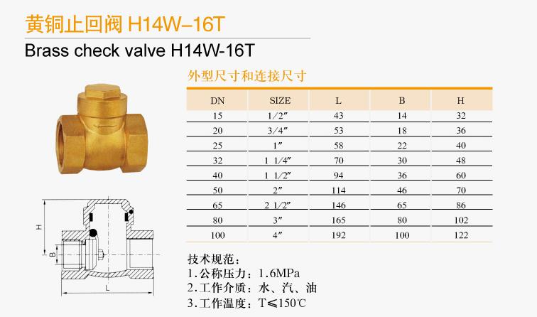 黃銅止回閥H14W-16T技術規(guī)范: