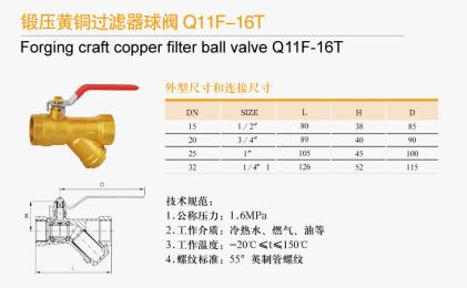 鍛壓黃銅過(guò)濾器球閥Q11F-16T技術(shù)規(guī)范: